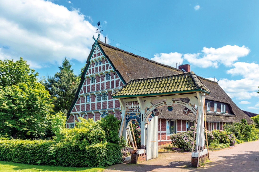 Typisch für das Alte Land sind die kostbar verzierten Hoftore. © Sven Mirow Photography
