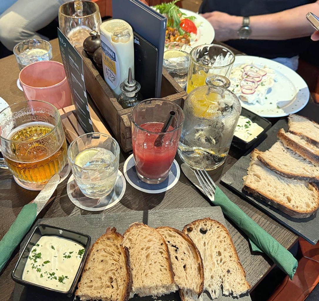 Als wir dort waren, war das Restaurant gut belegt und es war richtig vorab zu reservieren. Unsere Getränke wurden nach kurzer Bedenkzeit aufgenommen wie folgt: Pilsner Urquell und Budweiser je € 5,70, hauseigenes Wasser mit 0,7 l je € 4,50 und KIBA 0,4 l je € 5,40. Danach wurde die Essensbestellung entgegengenommen.