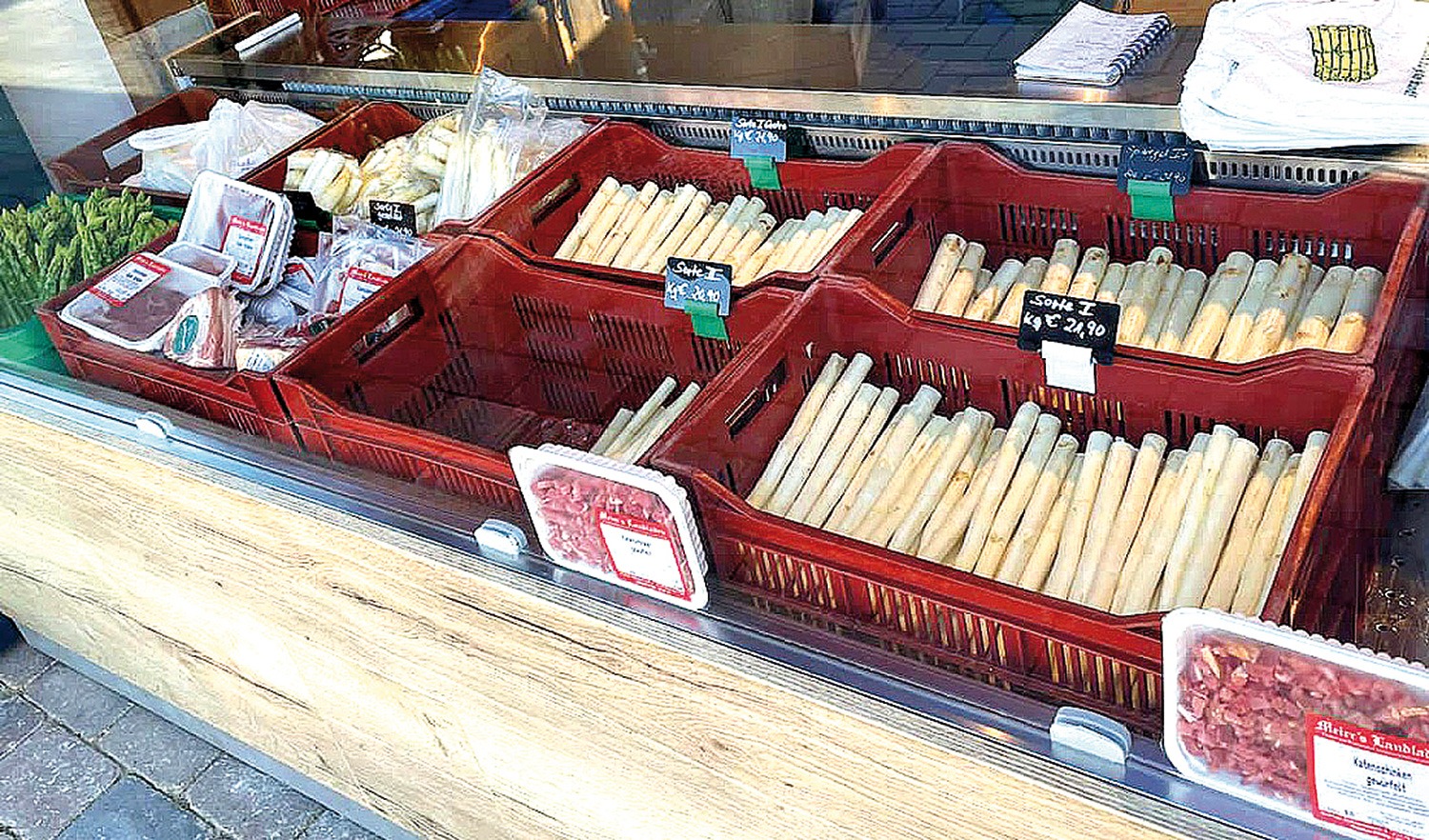 Eine Auswahl an Schinken, die perfekt dazu passt, findet Ihr hier auch. Der Weg lohnt sich aber auch, weil der Hof tolle Aktivitäten bietet. Dazu gehört das Bauerngolf, bei dem ihr mit einem außergewöhnlichen Schläger umgehen müsst: Der hat nämlich einen Holzschuh am Ende. Zehn Bahnen könnt Ihr auf Hof Bartels spielen – ideal für einen Familienausflug nach dem Spargelkauf.