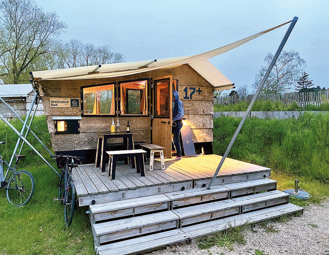 Egal ob in einer Hütte oder den feinen Radboxen auf dem Destinaturgelände, ausgeschlafen und mit gutem Frühstück kann man die nächste Etappe gut in Angriff nehmen. Die Fähre nur für Personen und Räder nimmt man gerne, ein Kleinod von Frachtkahn mit freundlichem Schiffer und kleinem Fährpreis oder FAIRpreis – Radwandern macht auch dem Geldbeutel Spaß.