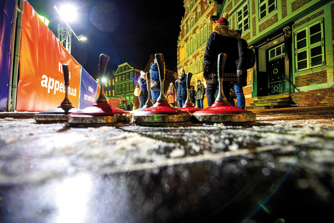 Das Eisstockschießen vor der besonderen Kulisse des historischen Hansehafens ist ein beliebtes Teamvergnügen. Die 18 Meter lange Bahn ist vom 24. November bis zum 29. Dezember bespielbar, das Equipment ist vor Ort vorhanden. Auch wärmende Getränke werden serviert.